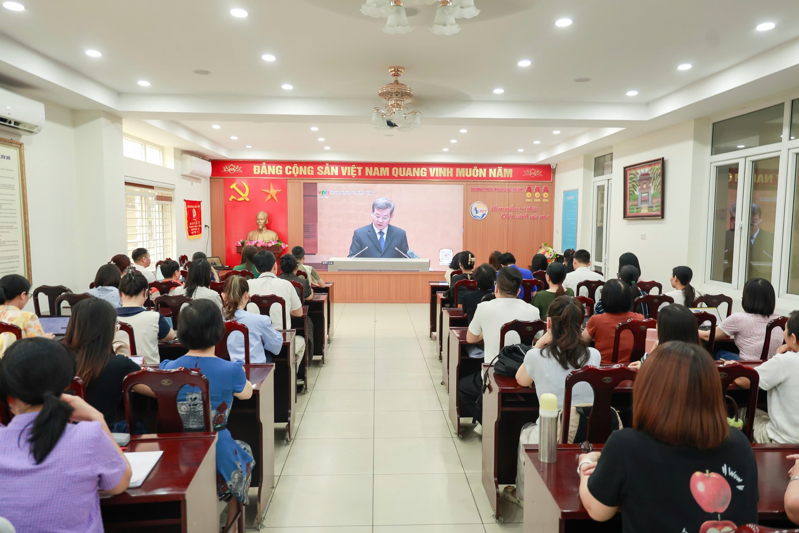 Ngay từ đầu giờ sáng, không khí tham dự diễn ra nghiêm túc, trật tự. Các cán bộ, giáo viên, nhân viên đã có mặt đầy đủ tại Phòng Hội đồng sư phạm để cùng theo dõi Hội nghị qua sóng truyền hình trực tiếp và các nền tảng số.