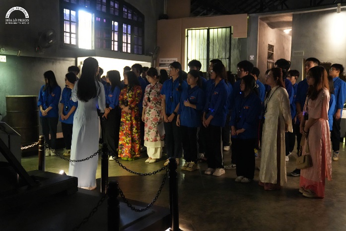 Phần tham quan và nghe thuyết minh để lại trong tôi nhiều suy nghĩ sâu sắc hơn cả. Đằng sau những bức tường dày đặc ấy là cả một trang sử bi hùng mà tôi chưa từng hình dung rõ đến vậy. Những người tù cách mạng bị giam cầm trong điều kiện khắc nghiệt, chịu đựng những hình thức tra tấn dã man của kẻ thù, bị chà đạp, khinh rẻ xem thường, những chiếc bát cơm sứt mẻ, những lần phải ngủ sàn bê tông trong trời đông giá rét,… Vậy mà không một ai cúi đầu khuất phục. Họ vẫn tìm cách vượt ngục qua những con đường cống tối tăm, vẫn tự tổ chức lớp học trong lao tù, truyền cho nhau con chữ và ngọn lửa lý tưởng, tôi càng thêm ngưỡng mộ và biết ơn, biết ơn sự vĩ đại của những con người đã chọn đứng thẳng giữa nghịch cảnh, biết ơn ý chí và sự kiên cường ấy để chúng tôi hôm nay không phải biết đến xích xiềng là gì, tất cả đều nhắc tôi rằng: “Thế hệ cha ông đã anh dũng đánh đổi bằng chính xương máu và tuổi trẻ của mình để chúng tôi được ngồi học trong mái trường hạnh phúc hôm nay!”